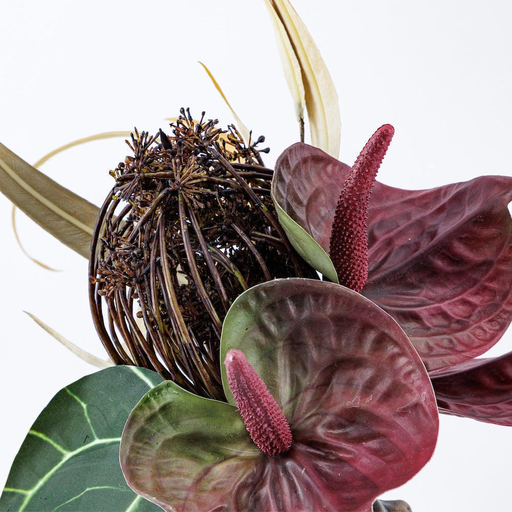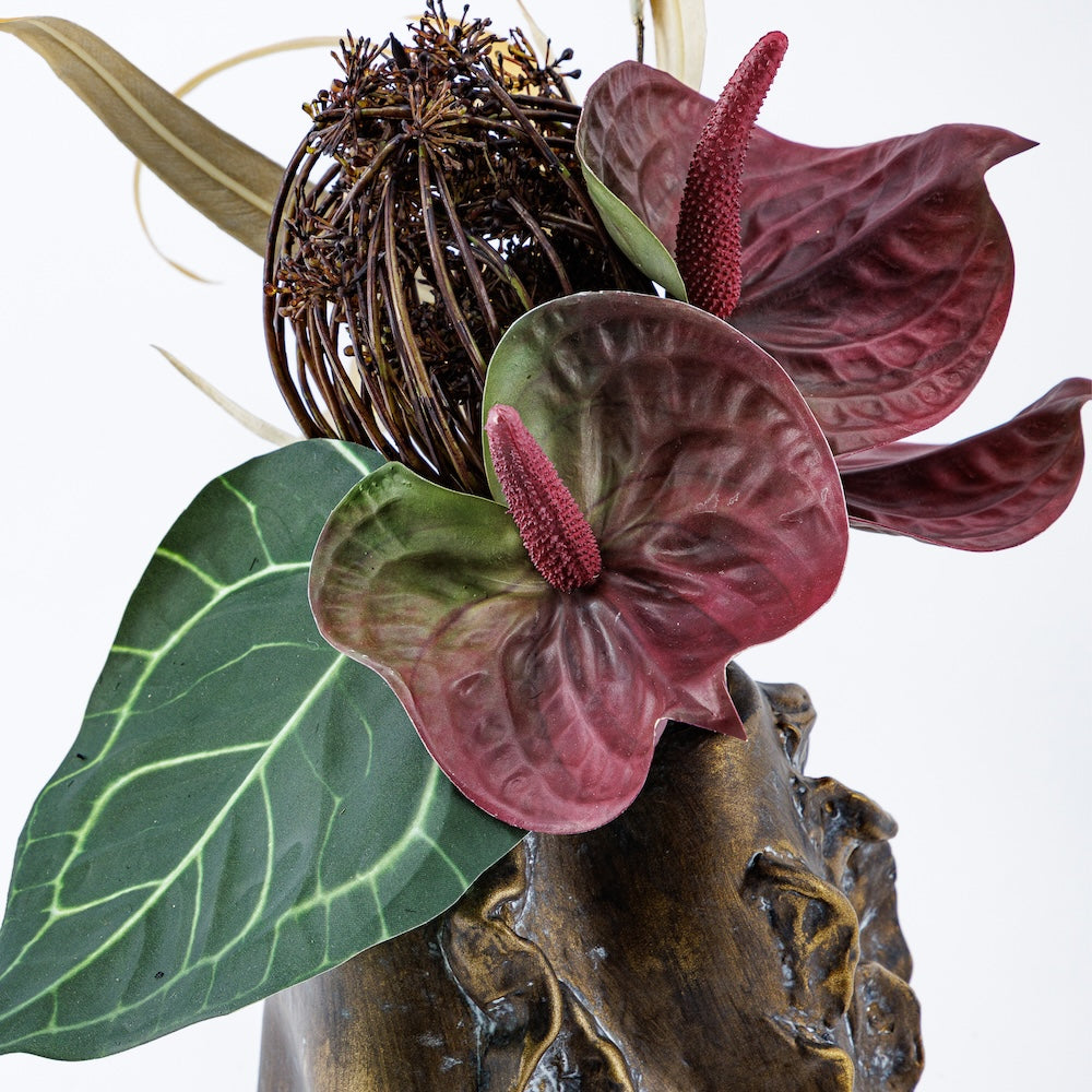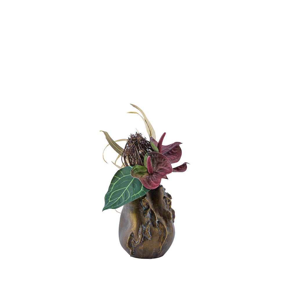 『華影 ーKAEIー』 は、厳選されたフラワーベースに、アーティフィシャルフラワーをアレンジしたコレクション。造花ならではのエキゾチックな配色や独創的なアレンジに、彫刻的な存在感をもつフラワーベースを組み合わせ、ひとつの完成された作品として仕立てました。置くだけで上質な彩りと洗練さを添え、アート空間を創り出します。