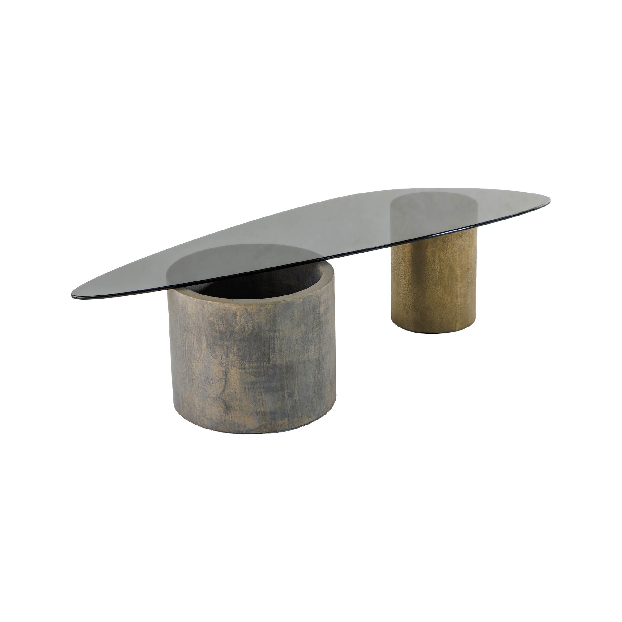 This table features a mobile glass top placed on two asymmetrical MORTEX bases.